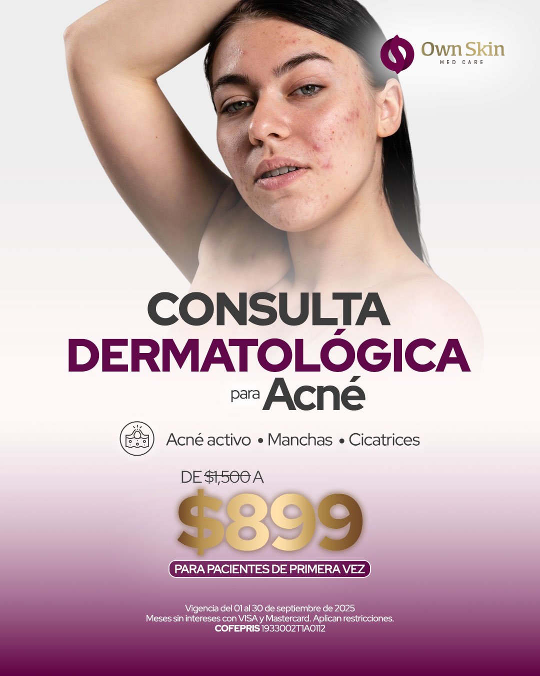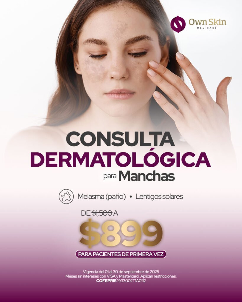 No dejes pasar la oportunidad de mejorar tu salud cutánea con la promoción de consulta dermatológica en Own Skin. Reserva tu cita hoy mismo y comienza tu viaje hacia una piel más saludable y radiante.